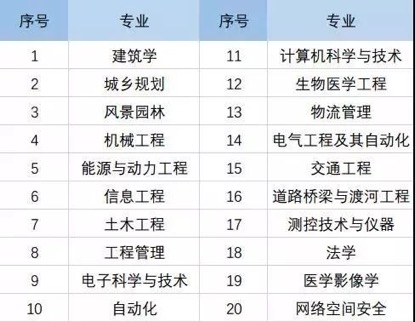 国家级一流本科专业建设点入选专业