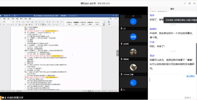 2020年3月29日下午14点,为最大限度降低疫情对硕士学位论文指导工作的不利影响,保障必赢研究生学位论文质量,366net必赢官网在腾讯会议平台线上召开“2020年法理学与国际法学科硕士论文质量指导会”。学院论文质量指导小组成员、法理学和国际法学科全体老师和硕士研究生70余人参加了此次会议。