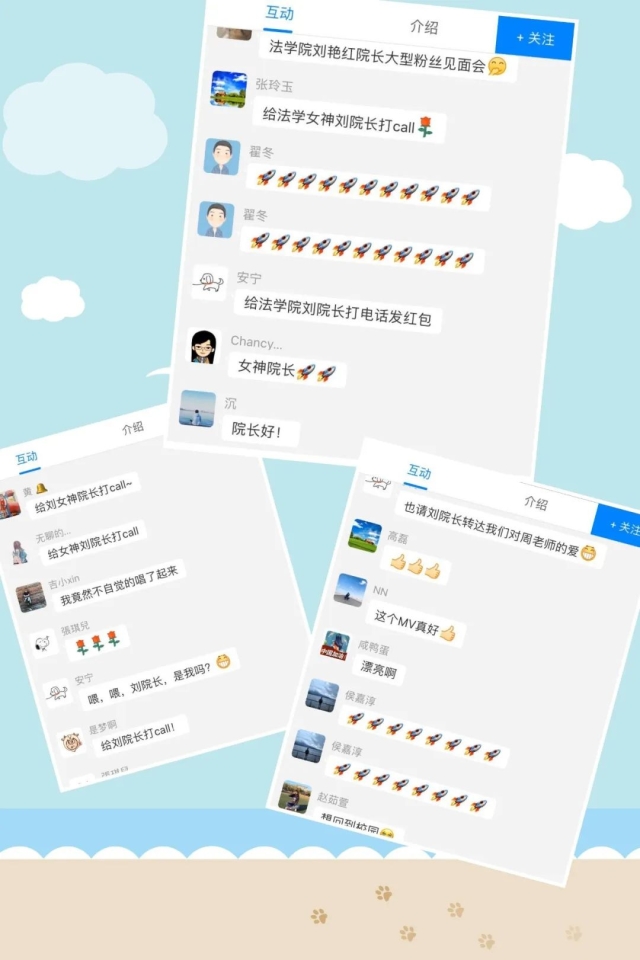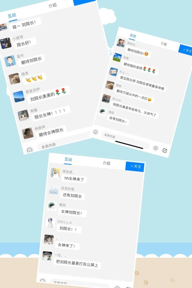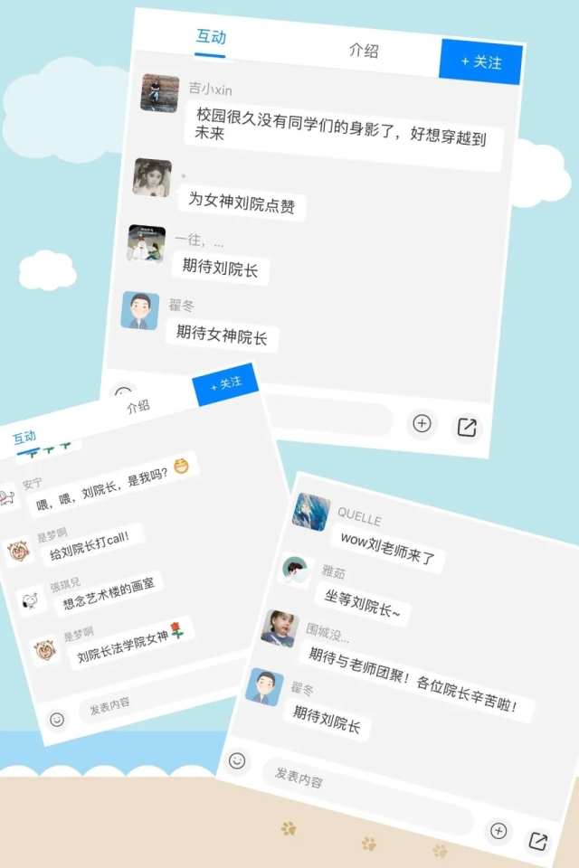 活动时间虽然有限,却是为大家提供了一个一解“相思苦”的天地,同学们自始至终热情高涨,在公屏写下对校园和老师们满满的想念和关心,同时也对云相见的每一位院长疯狂点赞,如此快要溢出屏幕的思念,是疫情隔不断的情谊,我们天南地北,却都心系东南。疫情即将过去,开学即将到来,同学们对活动的积极参与,体现了大家对校园的深切思念。
