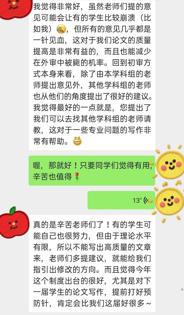 学生们对硕士论文质量指导会的反馈大致可以总结为以下几点: