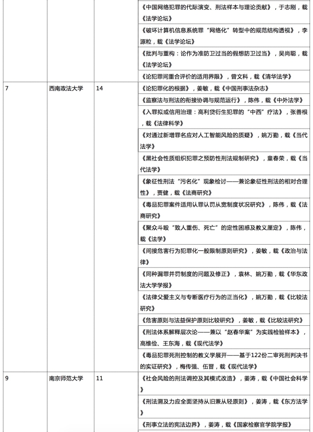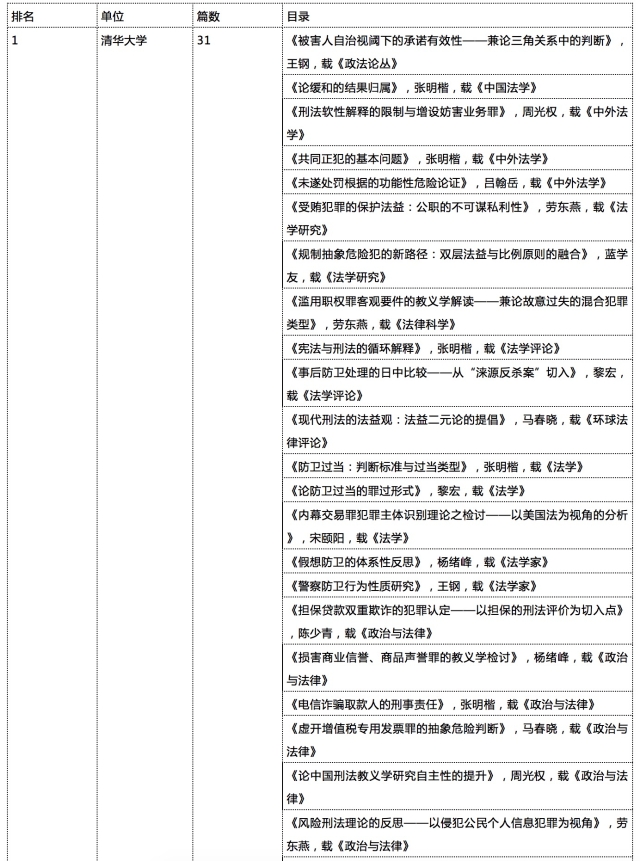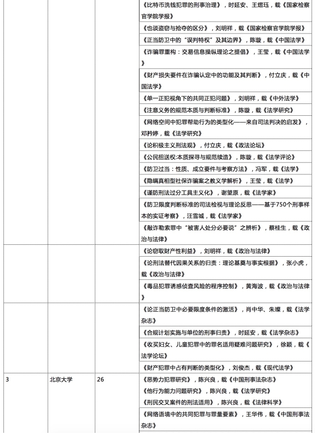 2.刑法基础理论研究,如正当防卫、正犯问题、竞合问题等。阶层论、法教义学分析占据绝大部分。