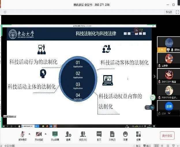 胡朝阳教授开设的《科技法》,依托腾讯会议,以“课前预习、课间参与、课后复习”为指导,倾囊传授法学理论知识。在讲授过程中,关注前沿科技动态,结合思政热点,授予专业课知识的同时提高了学生的民族自豪感,实现了思政与专业课程的结合,引起了强烈反响。