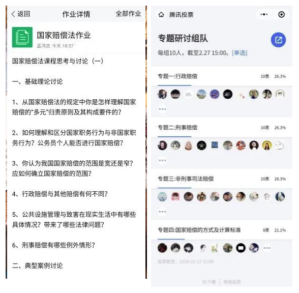 龚向和教授开设的《人权法专题》,通过腾讯会议让学生语音开麦做“主播”,辅之以微信群的文字表达功能,保障每位同学都有畅所欲言的机会,推动课堂研讨氛围的活跃。