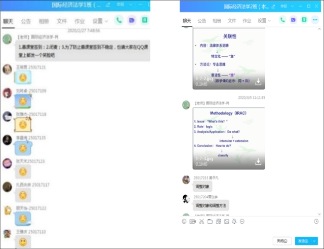肖冰教授开设的《国际经济法学》,采取QQ直播授课为主、异步SPOC和慕课堂为辅的授课方式。
