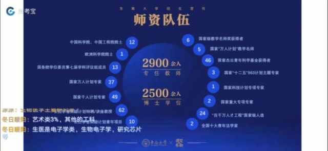 目前我校有中国工程院、中国科学院院士12人,欧洲科学院院士1人,国务院学科委员第七届学科评议组成员13人,国家万人计划专家37人,国家前千人计划专家49人,长江学者奖励计划特聘教授(包括讲座教授)一共是62位,长江学者奖励计划青年项目10人,6位国家级教学名师奖获得者,5位国家万人计划教学名师,46位国家杰出青年科学基金获得者,3位国家“十二五”863计划首席专家,一个国家科技计划专项专家,两个国家重大专项专家,24个“百千万人才工程”国家级人选,2位全国十大青年法学家。
