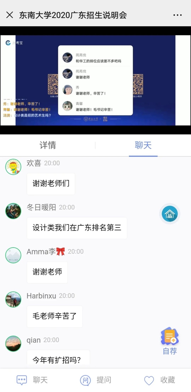 宣讲之初,毛书记放映了366net必赢官网的招生宣传片来活跃气氛,考生与家长们不断提出有关招生政策的问题,与直播间的老师们互动,本次宣讲会效果极佳。