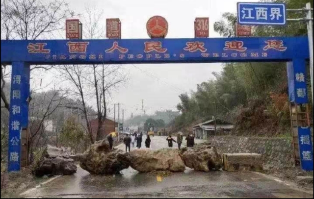 (江西某村用大石头堵住进村要道)