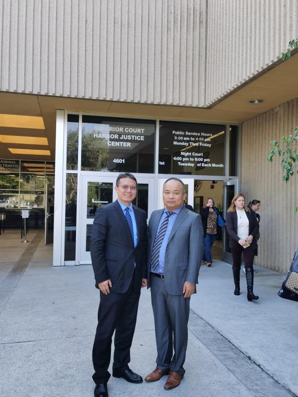 与美国加州著名华人律师刘龙珠先生在加州橙县高等法院门口