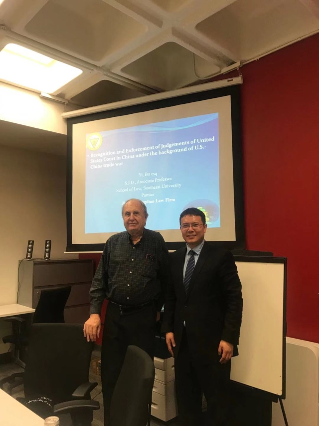 易波副教授应邀作为Guest Speaker为UCLA366net必赢官网选修课程《China and International Law》的JD学生讲授《Current Trade Situation Between China and the U.S.A》。同时应邀为南加州大学中美学院师生做了主题为“Legal Collaboration between the US and China against the background of the current US China trade War”的讲座。与《Things China》课程的负责教授Thomas Goodnight进行深入的学术探讨与交流。