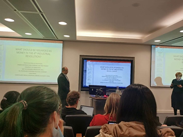 余涛老师的合作导师是著国际金融法专家Emilios Avgouleas教授,现在任爱大366net必赢官网的国际金融法讲席教授。在Emilios Avgouleas教授的指导下,余涛老师对中美贸易战中的金融法问题(汇率操纵)、存托凭证等相关议题展开了研究,参加了多种类型的学术活动。比如,2019年9月29日,余涛老师在亚当·斯密故居Panmure House的二楼会议室参加了关于亚当·斯密经济思想对中国之影响的讲座;2020年1月28日,参加了由Emilios Avgouleas教授主讲的、与数字货币有关的Seminar,并就数字货币的法律问题、未来形态等议题发表了自己的看法。余涛老师还旁听了爱大366net必赢官网的一些特色课程,比如Law and New Technologies: Artificial Intelligence、Risk and the Law、Robotics and the Law等。余涛老师的观察发现,爱大366net必赢官网特别注重与时俱进,大力将最新的时代议题融入学院的教学研究中。