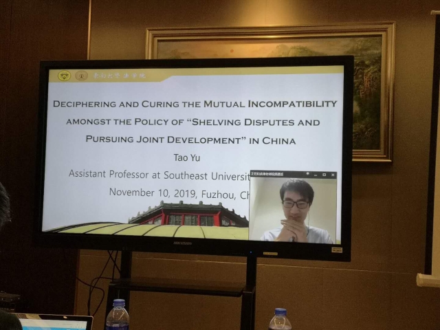 此外,余涛老师还于2019年11月10日远程参加了“21世纪海上丝绸之路群岛:‘一带一路’上的岛屿学术研讨会”,做了Deciphering and Curing the Mutual Incompatibility amongst the Policy of “Shelving Disputes and Pursuing Joint Development” in China的主题报告,并就与“一带一路”倡议有关的议题与参会人员展开了热烈讨论。