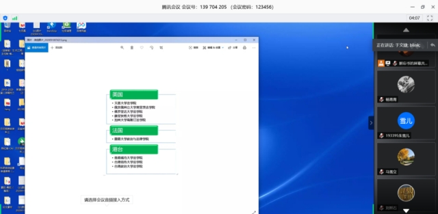 本次云端会议特别邀请了国际法教研室的于文婕老师,为同学们较为详细地介绍了目前必赢的国际交流项目及政策安排,主要包括四个方面:已有合作的院校简介、出国费用的补贴详情、修学学分的认定标准和国外学校的申请方式。