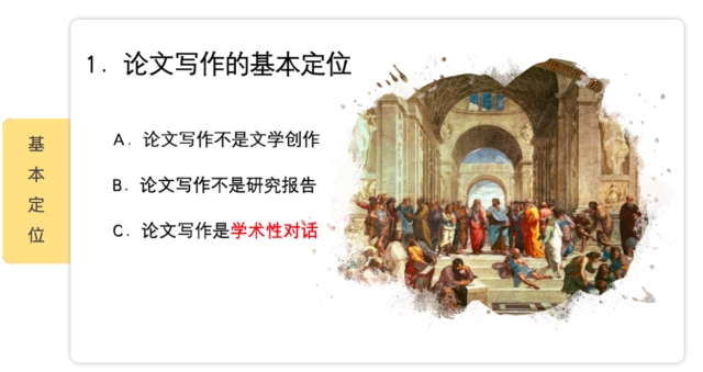 接着,马学长从论文写作的基本定位、必要积累以及额外辅翼这三个方面徐徐道来,运用众多例子、引用名家资料、借助幽默风趣的语言,将论文写作的要点与常见的写作误区细细为同学们进行了讲解。