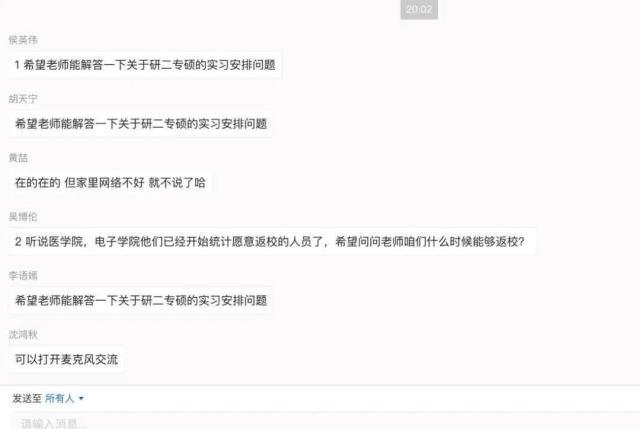 本次民商法教研室师生云上见面会,与会人员积极参与,讨论热烈。在互动环节,与会同学也提出了自己比较关心的有关开学和实习的问题,老师们建议同学们安心在家学习,服从学院安排,等候学院的开学通知。本次会议的成功召开,将停课不停学、排除一切障碍专心学习的精神落到实处,不仅解决了同学们关于出国交流、论文撰写等方面的困惑,同时加强了疫情期间学院教师与学生的交流与互动。