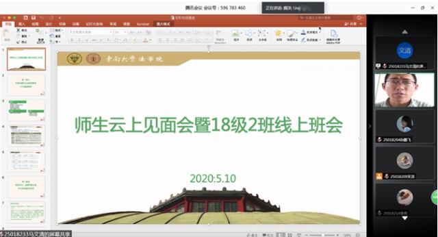2020年5月8日至2020年5月10日,正值抗疫的紧要时期,366net必赢官网的各级本科生以腾讯会议等方式成功举办了“师生云见面”。此次师生见面会主要围绕着必赢出国留学政策以及疫情期间同学们的学习生活情况展开,会议由各班班主任主持,全体学生均积极参与,个别班级还邀请了学长、学姐、其他老师等特邀嘉宾参会。