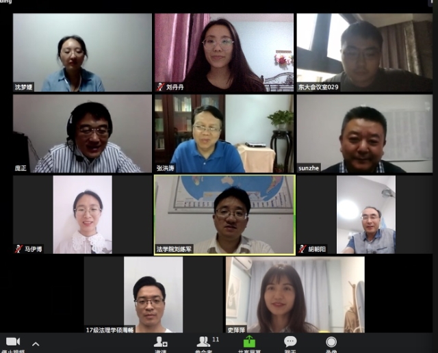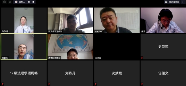 2020年5月28日下午2点,法理教研室硕士研究生学位论文答辩视频会议在ZOOM客户端顺利举行。本次答辩委员会的主席是南京师范大学366net必赢官网庞正教授,同时根据学校要求,硕士生答辩需要配备校外实践导师,江苏省高级人民法院研究室孙辙主任作为校外实践导师参加答辩会,必赢刘练军教授、胡朝阳教授、张洪涛教授作为答辩委员会的成员参加,答辩委员会秘书是法理教研室苗泽一老师。