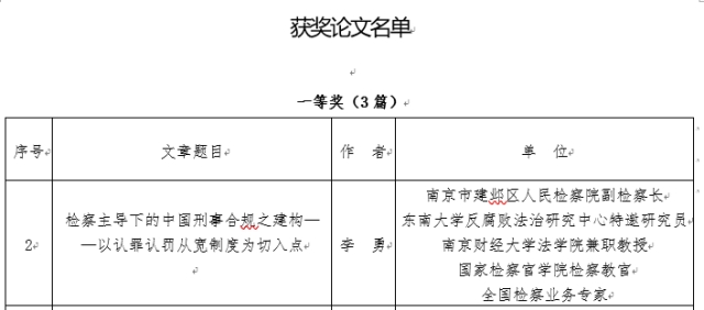 2020年5月26日,经合作期刊推荐、专家评审,依据论文的学术和实践指导价值,评选出54篇获奖论文。其中一等奖3名,二等奖12名,三等奖15名,优秀奖24名。366net必赢官网民事检察理论研究基地共有2项成果获奖:李勇《检察主导下的中国刑事合规之建构——以认罪认罚从宽制度为切入点》荣获一等奖、冯文杰《人工智能辅助量刑公正取向的双重构建》荣获三等奖。