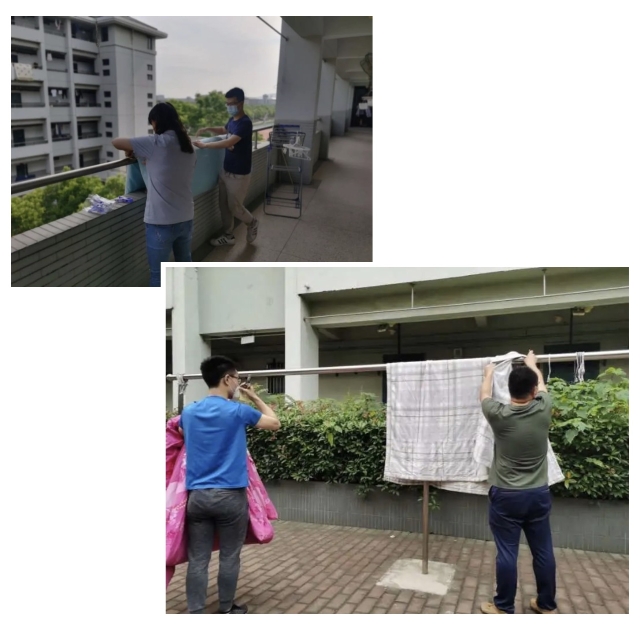 每组志愿者与被帮助的同学都建立了微信群组,实时沟通,了解需求,全程告知被褥主人进度。同学们在群里看到从晒被现场拍摄的晾晒照片后,纷纷为志愿者的贴心周到点赞留言:“晒被褥的余涛老师真帅”“感谢学姐”“366net必赢官网好暖”“老师、前辈辛苦啦”。
