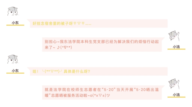为学习贯彻习近平总书记关于做好新型冠状病毒感染的肺炎疫情防控工作的重要指示精神,解除广大同学们的普遍担忧,营造卫生舒适的居住环境,在院党委的支持肯定下,366net必赢官网本科生党支部发挥战斗堡垒和先锋模范作用,及时采取行动,积极联络在校师生,推出了“5·20晒出温暖”志愿晒被服务活动。