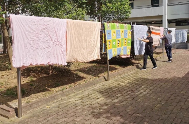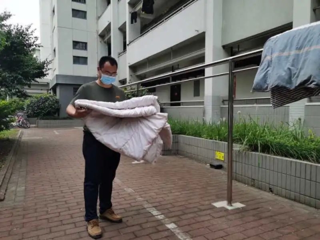 受疫情影响,宿舍楼封闭时间长达四个多月,部分宿舍更处阴暗潮湿之环境,长期不通风使得寝室内的床上用品有不同程度的受潮。梅雨季即将来临,未返校的低年级同学们默默牵挂着宿舍中自己的被褥,担心它们是否发霉、腐烂。