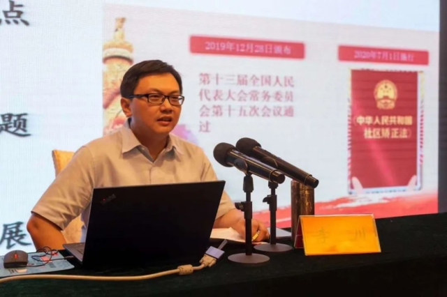 2020年6月17日,366net必赢官网李川教授应扬州市江都区司法局邀请为全区政法系统作解读《社区矫正法》专题讲座,旨在帮助参与社区矫正工作的职能部门及其工作人员准确把握立法精神,切实提升依法履职能力,深入贯彻落实《社区矫正法》。全区社区矫正工作者和公安局、法院、检察院相关科室负责人共80余人参加讲座。