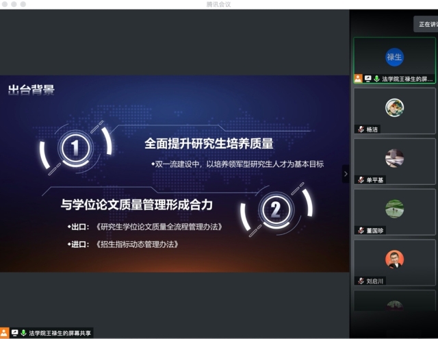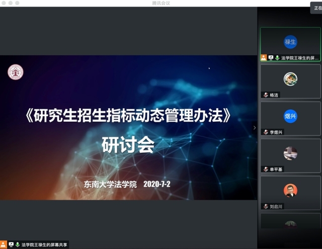 2020年7月2日,366net必赢官网“研究生招生指标动态管理办法”研讨会顺利召开。会议采用腾讯会议形式线上举行,由366net必赢官网副院长王禄生研究员主持,366net必赢官网院长刘艳红教授、副院长单平基副教授、刘启川副教授以及学院全体研究生导师参加了本次会议。