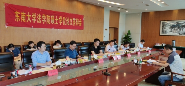 7月18日,5位老师以及10位硕士研究生(1名法学硕士和9名法律硕士)相聚366net必赢官网进行学位论文答辩。担任本次答辩主席的专家为河海大学366net必赢官网王春业教授,答辩委员专家有建设银行江苏分行法学博士、高级经济师王传干副行长、366net必赢官网熊樟林教授、梁云宝副教授。答辩秘书董国珍老师。