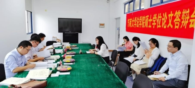 此次申请答辩的10名学生分为两组进行,每组的5名同学集中介绍本人论文后,记录答辩委员会提问的问题进行思考,集中介绍结束后按照答辩顺序依次进行问题回应与讨论。经专家们无记名投票表决,共10位硕士研究生顺利通过答辩。其中,曾亚梅同学获得答辩优秀的好成绩。答辩过程中,答辩学生自述流畅,重点表述清楚。答辩组成员围绕论文的写作逻辑、规范基础及论述充分性等方面进行提问,引导学生们认识到论文写作过程中应突出文章论述逻辑,真正的好文章应当能够让不是本专业的人读懂并了解作者的写作意图。答辩组专业性、规范性的意见让整场答辩会围绕规范论文范式、提高论文质量高效进行,答辩学生皆表示受益匪浅,虚心接受答辩组建议,保证在论文最终提交前结合答辩组建议认真修改。
