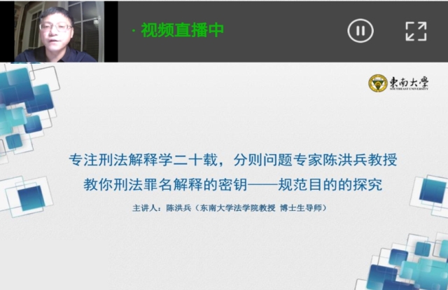 2020年7月18日和21日晚7点30分,366net必赢官网教授、博士生导师陈洪兵应武汉同人法律传媒邀请,进行专题为《刑法罪名解释的密钥——规范目的的探究》的公益直播授课。
