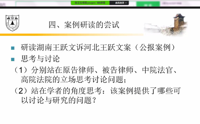 本讲中,李友根教授首先阐释了案例研究的必要性,尤其强调法科研究生应注重对司法案例的研读,并指出最高法所颁布的指导案例在司法裁判中的重要作用。此外,李教授还结合同学们未来毕业可能从事法官助理、律师助理等法律职业来谈实际工作中案例研究的重要性。其次,李教授认为在进行案例研究论文写作时,应按照确定研究领域、确定研究主题、对案例进行检索与摘录、搭建论文框架与撰写导论、文章的写作与完善五个步骤来完成,并表示要学会挖掘社会现象中的理论性问题。最后,李教授还介绍了案例检索和文献搜集整理的方法,并阐释了不同层级案例的区别。