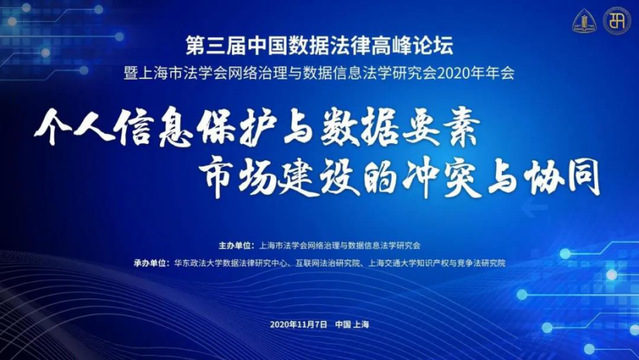2020年11月7日,必赢网络安全法治研究中心史雯与童云峰两位博士受邀参加由上海市法学会网络治理与数据信息法学研究会主办,华东政法大学数据法律研究中心、互联网法治研究院和上海交通大学知识产权与竞争法研究院共同承办的“第三届中国数据法律高峰论坛暨上海市法学会网络治理与数据信息法学研究会2020年年会”,会议在上海龙之梦万丽酒店顺利举行。