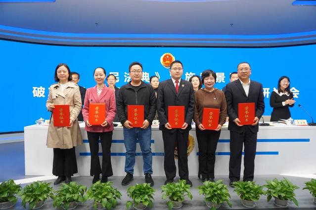 江苏省人民检察院第六检察部主任陆军宣布了优秀论文评选结果。刘霞副厅长、汪莉副检察长、李浩教授、张勇利检察官、李佳倩检察官、陆军主任为获奖者颁奖。