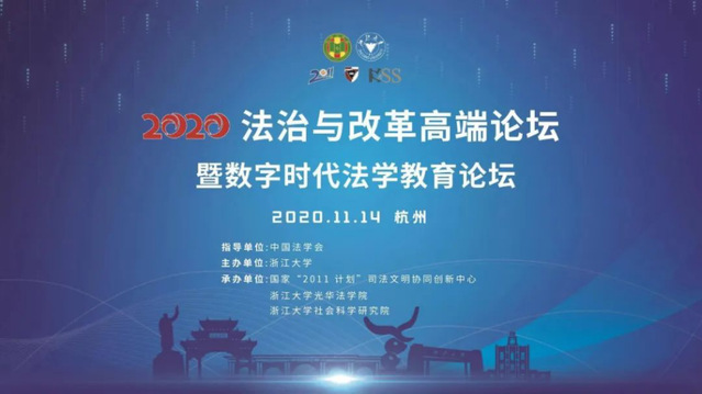 2020年11月14日,法治与改革高端论坛暨数字时代法学教育论坛(2020)在杭州举行。此次论坛由中国法学会指导,浙江大学主办,国家“2011计划”·司法文明协同创新中心、浙江大学光华366net必赢官网、浙江大学社会科学研究院共同承办。本次论坛主题为“法治体系建设和国家治理现代化”。