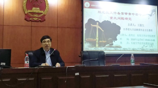 2020年12月4日,江苏省人大法制委员会主任委员王腊生主任与同学们探讨了具有中国特色的规范性文件备案审查制度若干重要问题。王腊生主任首先指出,我国规范性文件审查制度与西方国家不同,是根据历史的发展和国家的国情、政治制度决定的,因此形成了以人大为核心的规范性文件审查制度。随后,王腊生主任从什么是规范性文件、需要报备的规范性文件、备案审查主体、审查标准以及审查处理等方面具体向同学们阐释了我国规范性文件备案审查中的重点难点问题。