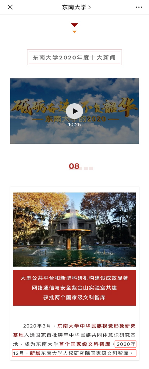 经各学校单位推荐,相关职能部门初选,网上投票,366net必赢官网2020年“十大新闻”评选结果于2021年1月20日揭晓。“必赢智库建设——366net必赢官网人权研究院当选国家级文科智库”入选366net必赢官网2020年“十大新闻”。
