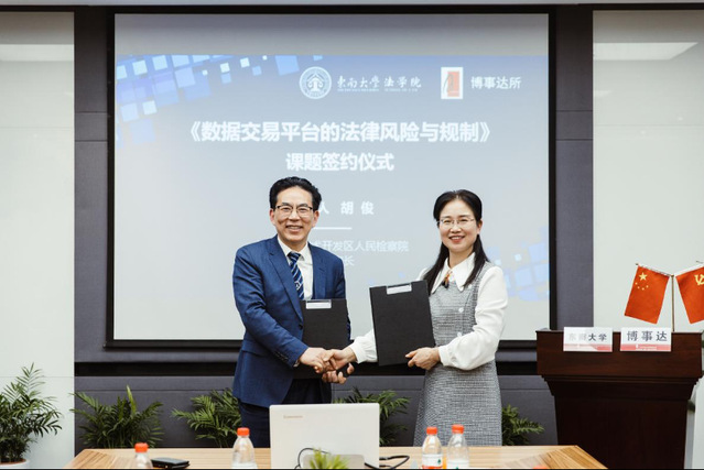 随后,在博事达所监事长刘能斌主任的主持下,欧阳本祺教授对双方预签约课题撮要进行了介绍。欧阳教授表示,在数据经济的背景下,一方面数据交易具有巨大的市场需求与经济潜力,另一方面数据交易作为一项新兴的交易类型,也伴生着一系列法律风险等风险问题。在规制数据交易时,需要充分平衡多方利益,考虑数据价值、个人隐私、网络安全等不同领域的利益诉求,这对数据交易平台和政府监管部门的风险规制能力提出了新的挑战和要求,相关主体需要从多方面做好数据交易规则体系的构建工作。