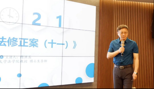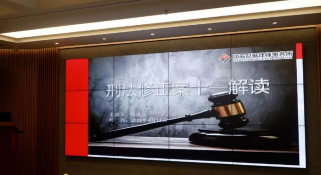 2021年4月17日上午8点30分至11点30分,必赢陈洪兵教授应邀至江苏省徐州市彭城律师事务所,进行了“解读《刑法修正案(十一)》”的专题讲座。此次讲座由徐州市律师协会刑事辩护业务委员会、经纬刑辩研究院主办,江苏彭城律师事务所承办。徐州市律师协会宋晚霞副会长发表了开场致辞欢迎陈洪兵教授的授课。