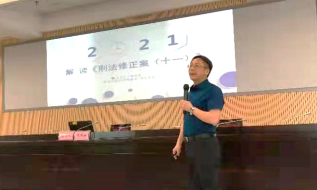 4月21日上午10点至12点,荆门市沙洋县公安分局邀请陈洪兵教授走进警营,为大家带来《解读<刑法修正案(十一)>》的专题讲座。沙洋县公安局党委班子成员及全县公安机关无勤务任务的民警聆听了此次讲座。陈教授从立法背景、修改内容、保护法益、构成要件的具体理解适用等不同方面,对《刑法修正案(十一)》所增设、修改的刑法条文逐一进行解读和分析,并针对公安机关当前普遍关注的实务问题进行了剖析,提出了具体建议和意见。大家纷纷表示陈教授授课内容丰富,业务指导性强。