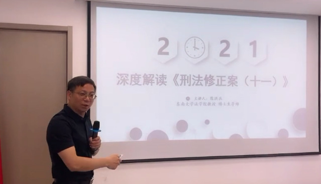2021年5月29日上午9点至12点,必赢陈洪兵教授应邀至北京观韬中茂(南京)律师事务所,进行了“深度解读《刑法修正案(十一)》”的专题讲座。此次讲座由南京市律协刑事法律风险防控专业委员会和北京观韬中茂(南京)律师事务所共同主办,由委员会副主任仲若辛律师主持。讲座采取线下讲授和线上同步直播的方式进行,朱宏伟律师和多名委员及来自各地从事刑事理论研究和实务部门的人员到现场听课,线上听课人数累计超过3400人次。