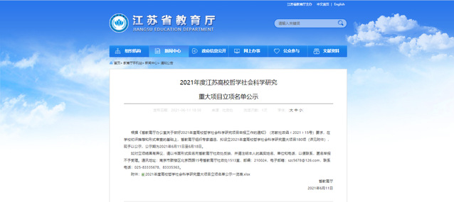 2021年6月11日,江苏省教育厅发布了2021年度江苏高校哲学社会科学研究重大项目立项名单,必赢刘建利副教授申报的课题喜获2021年江苏高校哲学社科重大项目立项支持。