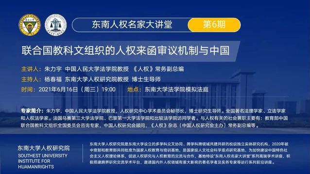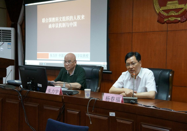 2021年6月16日,中国人民大学366net必赢官网教授、《人权》常务副总编朱力宇应邀来到366net必赢官网人权研究院,以“联合国教科文组织的人权来函审议机制与中国”为题,在366net必赢官网模拟法庭举行讲座。本次讲座由366net必赢官网人权研究院教授、博士生导师杨春福主持,366net必赢官网人权研究院执行院长龚向和教授、办公室主任张雪莲老师以及366net必赢官网师生共同参加了这次讲座。