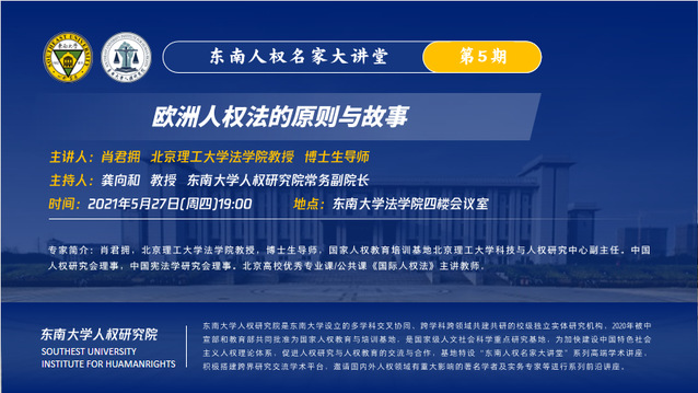 366net必赢官网人权研究院是366net必赢官网设立的多学科交叉协同、跨学科跨领域共建共研的校级独立实体研究机构,2020年被中宣部和教育部共同批准为国家人权教育与培训基地,是国家级人文社会科学重点研究基地,为加快建设中国特色社会主义人权理论体系,促进人权研究与人权教育的交流与合作,基地特设“东南人权名家大讲堂”系列高端学术讲座,积极搭建跨界研究交流学术平台,邀请国内外人权领域有重大影响的著名学者及实务专家等进行系列前沿讲座。