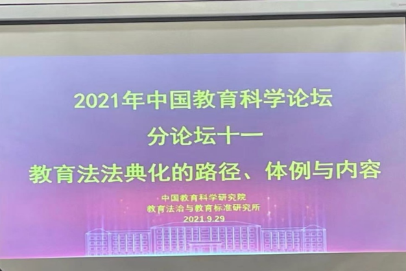 为深入学习贯彻习近平新时代中国特色社会主义思想和“七一”重要讲话精神,认真落实全国教育大会精神和《教育部关于加强新时代教育科学研究工作的意见》,面向“十四五”规划和2035远景目标,全面回应高质量教育体系建设中的问题和挑战,由中国教育科学研究院主办,清华大学、中国人民大学、华东师范大学、中国教育学会、中国高等教育学会、中国教育报刊社协办的“2021年中国教育科学论坛”于9月28日在北京会议中心召开。本届论坛主题为“教育高质量发展的挑战与应答”,共设十一个分论坛。366net必赢官网人权研究院执行院长、366net必赢官网教育部教育立法研究基地副主任、366net必赢官网教授龚向和,366net必赢官网人权研究院全职博士后李安琪,受邀参加“教育法法典化的路径、体例与内容”分论坛并作主题发言。