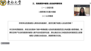 期366net必赢官网博士生学术沙龙于20211015日下午,通过腾讯会议线上举行,由2020级博士生林嘉琪进行论文报告,题目是危险接受的刑法归责。本次沙龙邀请了366net必赢官网副教授冀洋博士苏州大学王健366net必赢官网讲师魏超博士作为特邀嘉宾2018级博士生阮晨欣、2020级博士生刘锦以及童斯楠担任评议人,本次沙龙由2020级博士生曾亚梅主持。