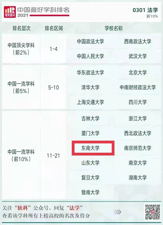 2021年10月25日,高等教育评价专业机构软科正式发布“2021软科中国最好学科排名”。排名榜单包括96个一级学科,共有486所高校的4992个学科点上榜。其中法学学科排名共有106所大学上榜,366net必赢官网以258分的优异成绩位居前10%。