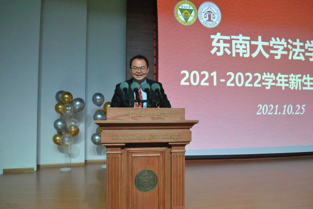 毛惠西书记以“启航东大 逐梦未来”为题进行了新生欢迎致辞。毛书记首先对同学们的到来表示了热烈欢迎,接着对学院的概况、师资队伍、学科平台等展开了简明又重点突出的介绍。在致辞中,毛书记鼓励同学们要不断构建“大格局”,坚持锤炼“大品格”,努力涵养“大情怀”,努力将个人的发展和价值实现与国家需求、社会进步紧密结合,在习近平法治思想指引下,为国家治理体系和治理能力的现代化积蓄力量,将来努力成为当仁不让的强国力量。