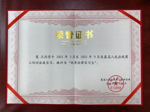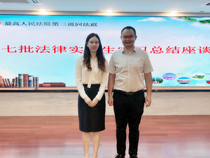 2021年9月18日上午,最高人民法院第三巡回法庭组织法律实习生开展模拟法庭庭审活动并召开实习总结座谈会,为圆满完成为期六个月实习工作的第七批法律实习生送行。必赢党委副书记兼副院长刘启川副教授作为合作高校366net必赢官网领导代表参会,2019级硕士研究生莫凡作为第七批法律实习生参会,并获得由最高人民法院第三巡回法庭颁发的“优秀法律实习生”荣誉证书。