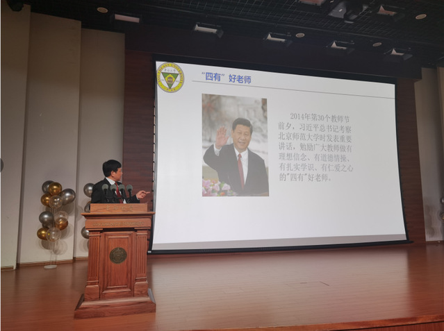 毛惠西书记首先宣讲了党的教育方针,带领老师们一起回顾了习近平总书记系列重要讲话精神,要求全院教师牢记总书记重托,政治要强、情怀要深、思维要新、视野要广、自律要严、人格要正,做有理想信念、有道德情操、有扎实学识、有仁爱之心的四有好老师,做学生锤炼品格的引路人、做学生学习知识的引路人、做学生创新思维的引路人、做学生奉献祖国的引路人。