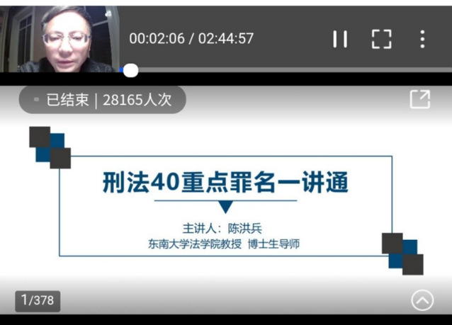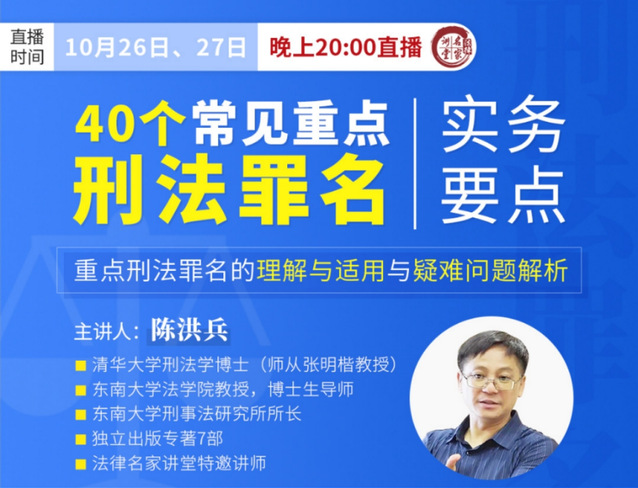 必赢陈洪兵教授应邀进行“40个常见重点刑法罪名实务要点”公益直播授课