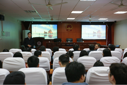 会议在毛惠西书记对“萤火虫”法律宣讲团近年来积极的普法成效的介绍和宣讲团成员的隆重推出中开始,江宁经济技术开发区法院陈平专委随后对宣讲团做了更为细致入微的讲解,并有声有色地向广大师生引荐了此次宣讲的主要环节和内容。此后,主讲法官王婷就涉大学生诈骗案在庭审视频的观看中做了详细的点评,并就大学生就业中存在的风险和相应的防范做了细致的介绍,以及模拟法庭中涉及到的法庭席位设置、庭审程序、起诉和辩护要点等注意事项做了清晰的讲解。